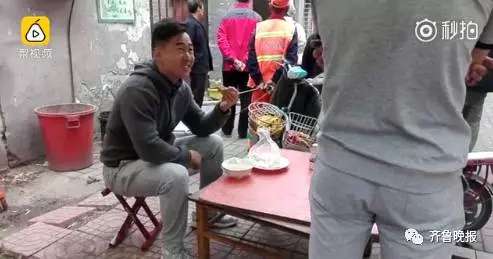 但是就在着火餐馆门前的小桌上,有个男子却在淡定的吃着早餐,时不时抬头张望一下火场,看着消防员往外拖着煤气罐,也丝毫不觉得紧张...
