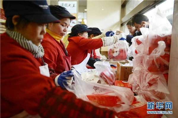 图为五芳斋工作人员繁忙工作。新华网 欧阳小洁摄