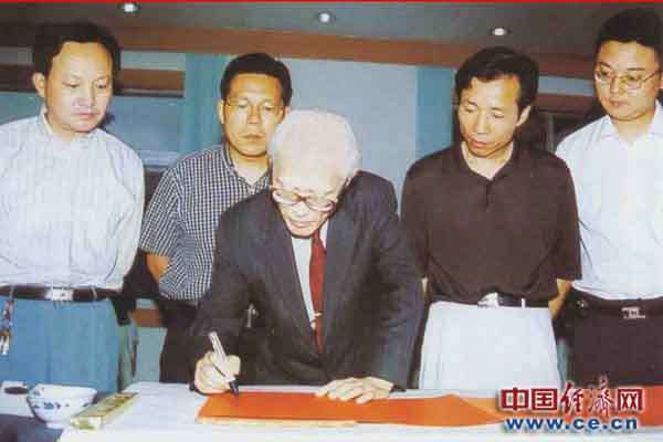 第2届红豆七台湾著名诗人余光中,参加完红豆相思节活动后,来到红豆集团参观时,为七夕红豆相思节提字:《一粒红豆,千年因缘》。