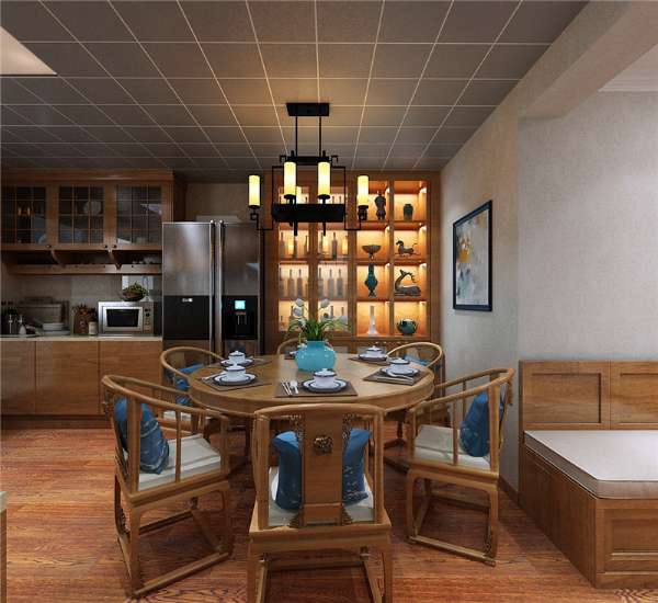 餐厅与厨房为一个空间,所以在不大的空间里,餐桌则选用了圆形桌,也正符合了我们中国人讲究的团团圆圆!