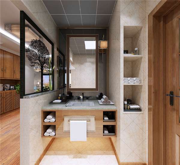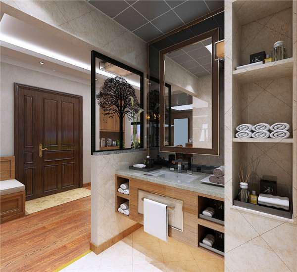 右边的壁龛,可以满足日常储藏物品的需要,比如化妆品、纸巾等的收纳;