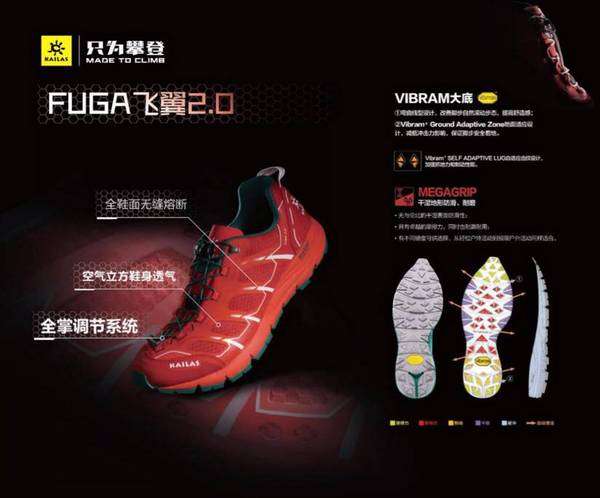 KAILAS FUGA Ⅱ采用橙色搭配斜开口设计理念,从外观看来给人耳目一新的感觉。靓丽鲜艳的橙色足以可以成为山间的一道风景,全掌调节系统设计理念在保护双脚的同时,也可更加有空间的释放双脚。在越野跑山间复杂的地形更加有力度的游刃有余。也可起到排汗透气功能。