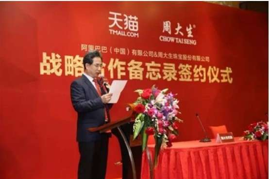 周大生董事长周宗文先生在致辞中,先表达了对阿里巴巴集团来宾的热烈欢迎,然后在签约仪式中说道:“我相信,阿里巴巴与周大生的携手,是创新产业与传统零售的完美结合,同样也是零售业未来发展方向。周大生有幸代表珠宝行业率先踏出这一步,既是幸运也是责任,我们将不辱使命,砥砺前行!”