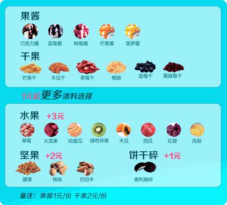 小编还了解到,除了“采用纯天然牛奶发酵”之外, DF酸奶冰淇淋的又一大卖点便是DF可以提供给消费者百变选择。通过DIY,消费者可以随意搭配果酱、果干、坚果和新鲜水果在内的多种添料。丰富的配料与酸奶冰淇淋健康清爽的口感相结合,完美体现了DF冰淇淋“百变口味 百遍快乐”的品牌定位。
