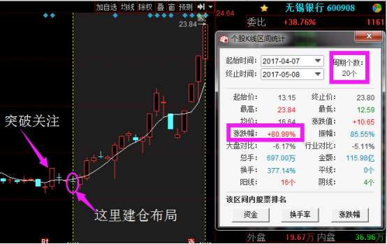 无锡银行前期一个涨停板突破的主力成本线之后带动开始缩量回调,成交量可以说又回到了之前的大小,这个时候股价也再次回踩主力成本线,那么这个点就是很好的一次绝佳的介入时机,截止8号大家也可以看到了,累积涨幅已经达到了80%,收益还是非常可观的。