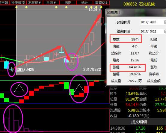 石化机械在4月26号这天,股价缩量回调,并出现倒垂线、机构增持和筹码堆积标志,那么这个点就是很好的一次绝佳的介入时机,截至22号大家也看到了,累计涨幅已经达到了66%以上,收益还是不错的。如果这波收益你没把握住的话,15号时再次出现介入信号,如果跟上第二波行情的朋友40个点的收益也是有的。