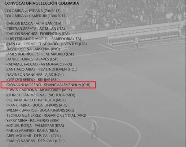 为备战与西班牙和喀麦隆的友谊赛,哥伦比亚足协公布了新一届国家队的大名单。上海申花队长、哥伦比亚球星乔瓦尼-莫雷诺时隔5年之后重返国家队大名单,他终于得到了国家队的认可。