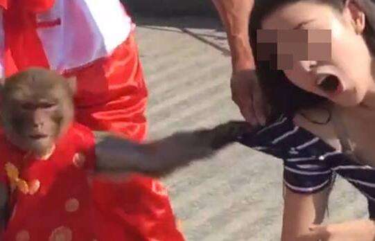 猴子与美女合影\