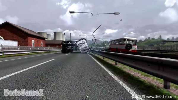 对《欧卡2》稍微了解一点的人都知道,《欧卡2》无论碰撞有多严重都不会出现视频中这种碰撞变形特效;路标、路灯、护栏等物体不是撞不动就是只能被撞倒或撞飞,不会像视频里这样被撞碎或拧成麻花。