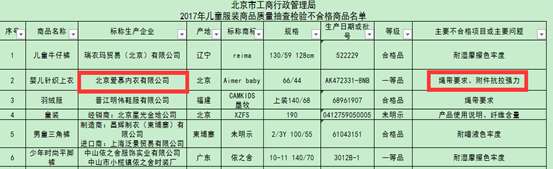 据悉,本次抽检的儿童服装依据国家相关标准进行检测,检测项目主要包括产品使用说明、纤维含量、染色牢度、绳带要求、附件抗拉强力等多个指标。其中3组商品存在质量问题且通过商品标称的企业地址及联系方式无法与标称生产企业取得联系。