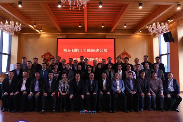 下午的杭州、厦门两地民建企业家座谈会在金都?海尚国际福惠堂举行。民建厦门市委主委黄世忠、民建杭州市委主委郭清晔、民建厦门市委副主委、福信集团董事长吴迪、副巡视员吴彦、秘书长寿遐、金都集团主席吴忠泉等60多位杭州、厦门两地民建企业家出席。