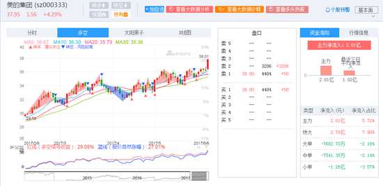 新浪财经讯 6月6日消息,美的集团股价持续拉升,迭创历史新高,截止发稿,报37.91元,涨4.26%。