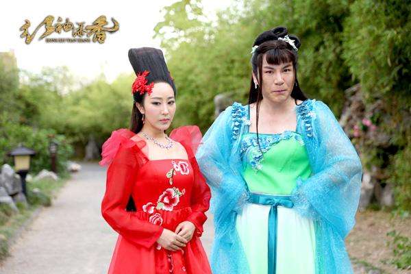 除了女一的精彩演绎,两位男主角的实力演出也是不容小觑。特别是反串饰演“青蛇”绿如蓝的马启光,彻底抛弃底线放飞自我,一人分饰男女两角“精分”十足,画面也是搞怪之余又暖心有爱。在片中,修炼成人形的绿如蓝原本是想“安静的做个美男子”,男装的扮相虽然不是玉树临风,也尚可算得风度翩翩。不料,“男儿郎”实际有着个“女儿心”,在与红袖比试失败后,绿如蓝彻底换成了女子装扮,高发髻齐刘海,粉绿裙衫,看似刁钻野蛮但也娇憨可爱。演员马启光在一些细节上的拿捏,堪称十分精准,将绿如蓝这个十几岁小丫头的心思演绎的淋漓尽致。而另一位男主黄朋,饰演表面老实木讷的书生舒添,不过内心却十分的“火热”,一不小心就会被带偏,远离“孔孟之道”。每当剧情中舒添一本正经的表情配上“有内涵”的台词,这种反差之感也给网友观片带来不少乐趣。
