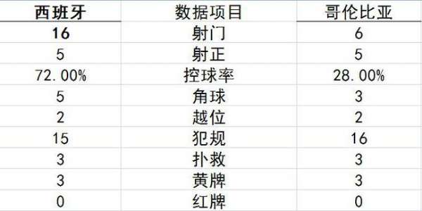 西班牙2-2哥伦比亚