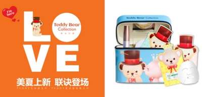2016年7月,经过半年的产品研发与生产筹备,美爆潮品与泰迪珍藏联袂推出首批产品——“化妆箱系列”与“原液面贴膜系列”率先亮相美爆十代店,给200万美爆粉丝和中国广大“熊粉”交上了第一份“爱”的答卷。