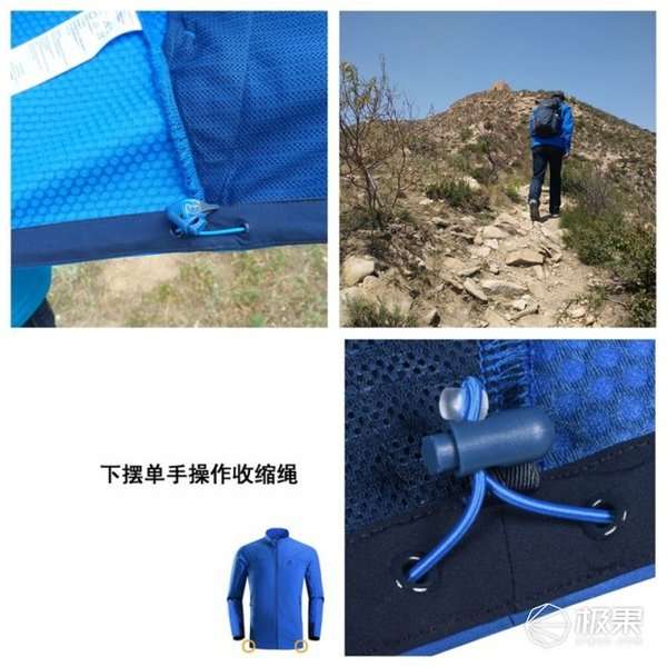 下摆单手操作收缩绳。可调节拉绳下摆,下摆隐藏抽绳扣件可单手方便收紧。内置抽绳扣件,下摆处也设计了收紧绳,可以根据需要抽紧下摆,增强防风效果。下摆的抽绳有效的防止冷风进入。冲锋衣的下摆或腰部是否有防风裙,如果没有防风裙是否有抽绳可以把衣服抽紧,防止在恶劣环境下风雪从下摆处灌进身体里。凯乐石蜚零软壳下摆也设有可调节衣摆大小的拉绳调节扣,根据个人腰围情况进行调节,方便户外穿着,穿起来更加贴身舒适。