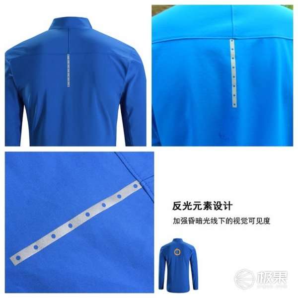 衣服的背面银白色反光元素设计,既美观又大方,保障夜间行走安全,起到夜间行走时的警示作用,加强昏暗光线下的视觉可见度。夜间警示作用,在夜晚跑步骑行时可以很大程度的保障安全保障夜间行动安全。集合时尚、美观、安全性于一身,成为服装的一个亮点。