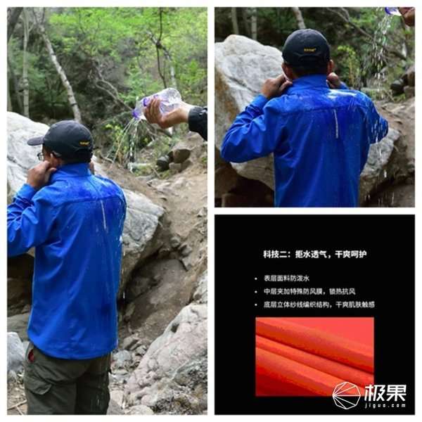 特别注意,软壳衣毕竟不是雨衣,如果长时间在雨中徒步,还是要穿专业雨具的。