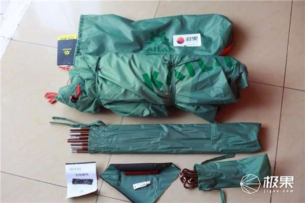 包装内有帐篷主体,支架杆、地插、说明书,还有一个小的修补袋。