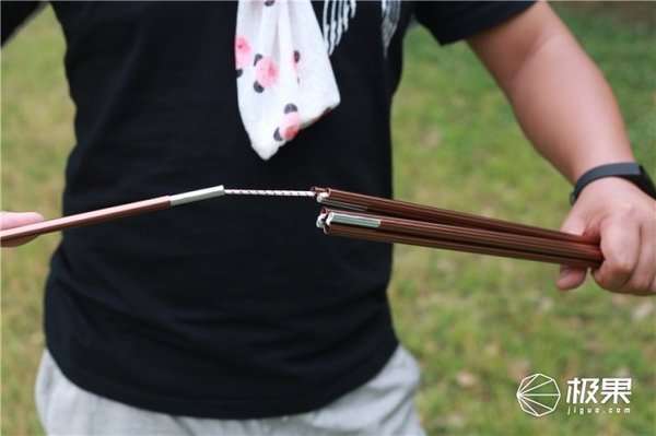 杆子是分段收纳的,使用时,直接展直,拼插在一起,就可以变成一根整杆。