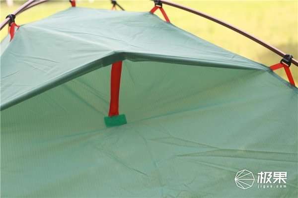 交叉式的帐杆,顶部的固件设计非常好,固定起来方便又合理。