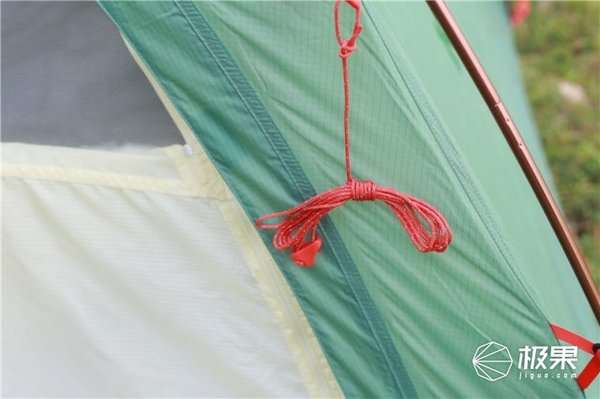 防风绳设计,配合地钉,可以更好的固定帐篷。