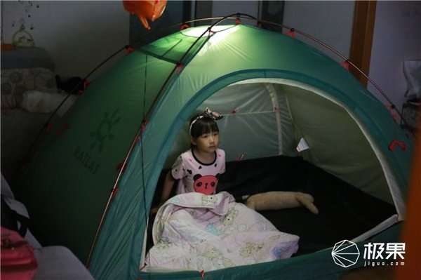 除了室外,偶尔室内搭个帐篷,也是一种不错的感受。女儿正帐篷内看电视呢,很兴奋。也很开心。