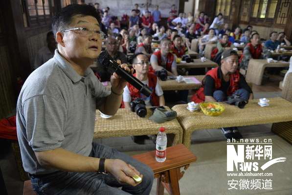 30日上午,60位新华网安徽频道签约摄影师来到了位于石台县的天方茶文化艺术馆,现场感受源远流长的茶文化。下午,在天方慢庄,签约摄影师们边品茶、边交流摄影心得,感受慢生活。新华网安徽频道邀请了中国新闻摄影学会副秘书长、新华社安徽分社高级记者于杰,就签约摄影师的摄影作品进行点评与经验分享,并就新闻摄影的发展方向与签约摄影师们进行了讨论。期间,签约摄影师们观看了茶艺表演。