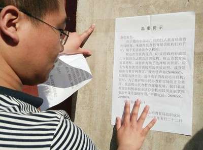 鞍山市教育局高职成教处副处长李林表示,教育局从未审批过这所培训学校,它是属于违规办学,没有经营许可。而且真正的巨人教育是全国连锁的,已经与总部核实,鞍山并没有这家“分校”。市教育局对其下达了停业整治通知的同时,还到周边学校张贴了“通告”。