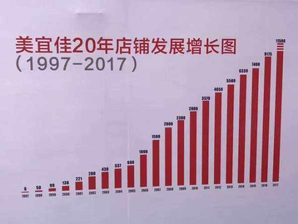 从1997年―2017年,美宜佳这20年店铺发展呈现飞速增长趋势。截止目前,美宜佳门店分布于全国5个省份,其中广东最多,达到9534家,此外福建326家、湖南108家、江西20家、湖北12家。