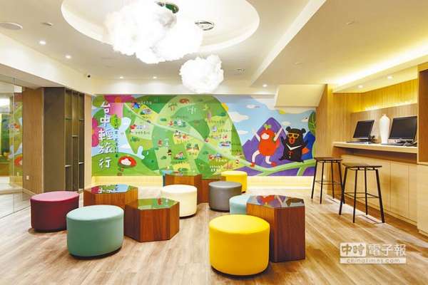 透过特制大型台中市区插画地图墙,跟着红豆姐姐与喔熊组长畅游台中,来一场轻旅行。图文/江富满
