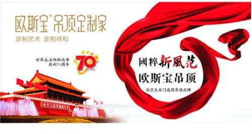 为纪念抗战胜利70周年,中国9月3日在北京天安门举行抗战胜利大阅兵仪式。当1.2万名官兵迈步走过天安门广场,最新式武器和飞机一一亮相时,激发了巨大的民族自豪感!特别值得一提的是,欧斯宝吊顶装修效果图)作为本次抗战胜利70周年阅兵仪式天安门吊顶选用品牌,用专业与实力,在天安门绽放别样的精彩!