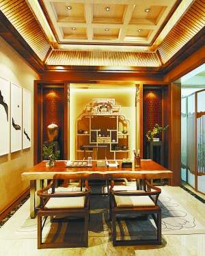 邹肖强所设计的特等奖作品《花开花落》,运用了传统雅致的镂空雕花图案,减轻了空间的沉重感,简洁明快,舒适惬意。