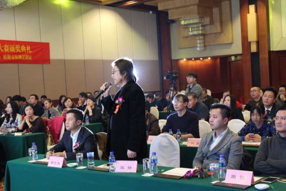 颁奖典礼开始,首先由中国民族建筑研究会环境艺术设计专业委员会秘书长郎志春先生发表致辞。郎秘书长提到:“欧斯宝杯”大赛自今年6月份启动以来就得到了广大媒体的持续跟踪报道和全国设计师的参赛响应,说明了设计行业十分重视产品原创设计和吊顶产业发展。郎秘书长在讲话中指出,欧斯宝杯大赛具有重大的意义,对扶持设计人才成长,促进中国艺术文化设计产业发展起到了重要的作用,今届欧斯宝杯大赛取得了很多成功经验,以及往后的赛事中将继续发扬赛事精神,继续依靠更多的设计专业资源、结合广泛的社会力量,把欧斯宝杯设计大赛打造成中国吊顶产业原创设计最具影响力的品牌赛事。郎秘书长精彩的致辞,对欧斯宝杯大赛的精准独到分析,将欧斯宝杯大赛的理论意义与实践意义提升到了另一个战略高度,对丰富大赛含义与内容、扩充品牌赛事影响力起到了深刻广泛的作用。