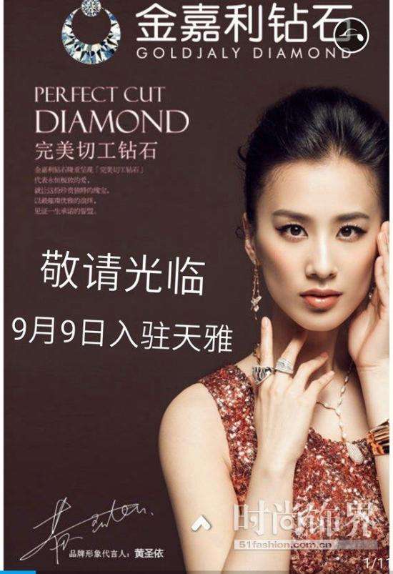 金嘉利钻石由当红女神黄圣依代言,更有强有力的多方位的广告支持,各大媒体也都倾情合作。