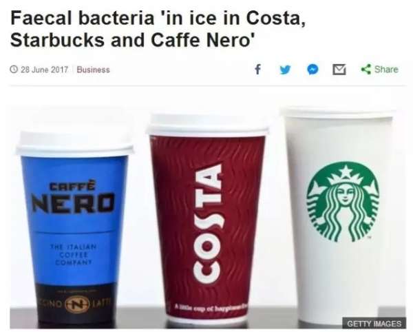 \u00A0\u00A0\u00A0\u00A0BBC检测结果显示,英国常见的三家咖啡连锁店星巴克、Costa(中文译名咖世家)和Nero(尼路)的冰饮中都被检测出粪大肠菌群!