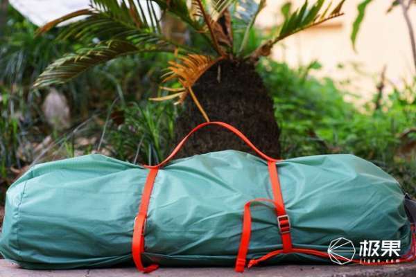 帐篷有两根专用的绑带进行捆绑,以便于收纳,在携带时需要尽量把它裹紧。