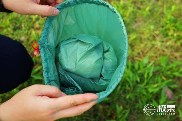 凯乐石天穹四季帐的外袋有收口的设计,需要使用时可以快速取出。