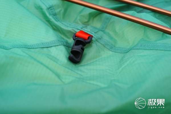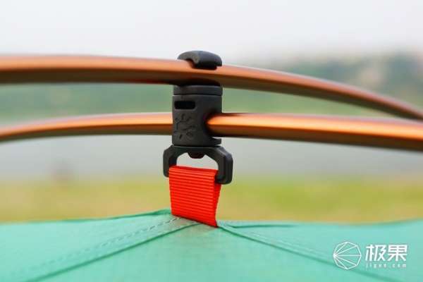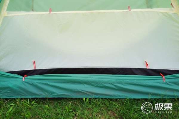 如果将门帘打开,还有专门的扣件进行固定,这样不至于拖到地上。内帐的门帘也是同样的设计,而且上面有一层纱网,在开着透气的同时也能有效防止蚊虫的侵袭。