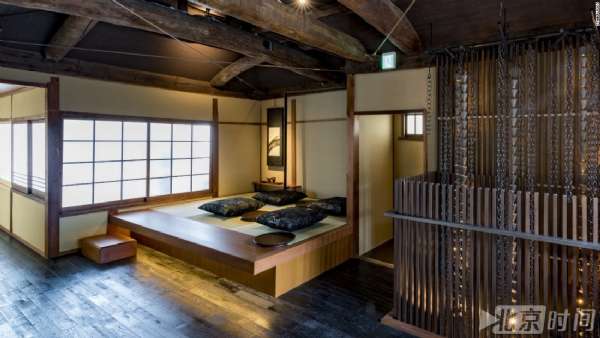 顾客可以坐在传统的榻榻米和布团上、观赏庭院中的日式盆栽喝着星巴克,也是相当混搭
