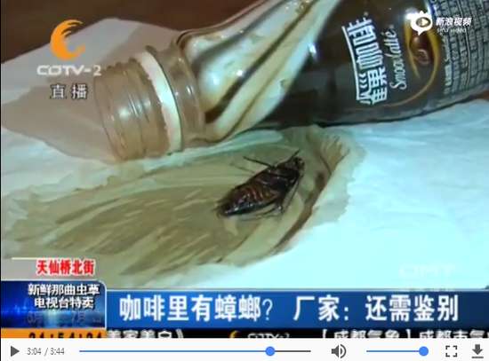 雀巢咖啡瓶中出现蟑螂 厂家回应:还需鉴别