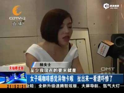 女子喝咖啡觉异物卡喉 扯出来瞧吓一跳