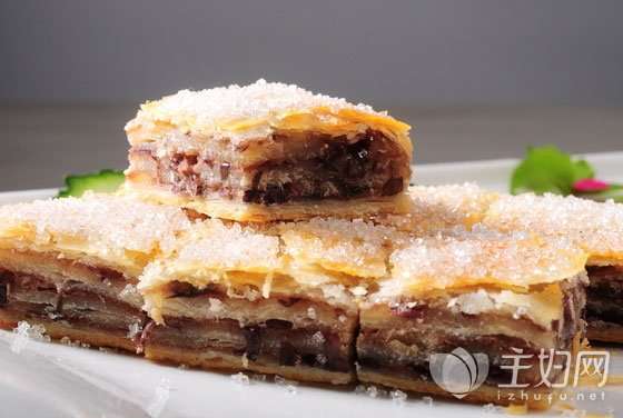 4.放凉之后放上豆沙,这豆沙是我自己做的,所以并不是很甜。用之前用蜂蜜和少许糖分搅拌。