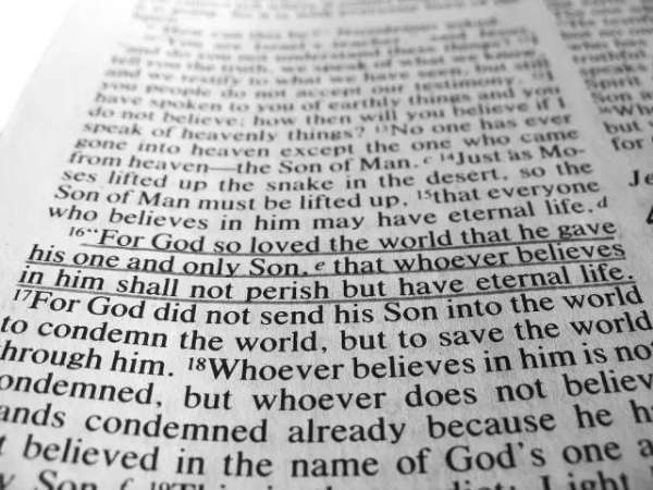 △ 《圣经》:开始都已启动。神爱世人,他唯一的儿子,那凡信不灭亡,反得永生。