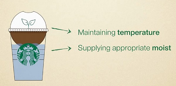 如果你在韩国星巴克买外带咖啡,杯托上就会有一包种子和混合有咖啡渣的种植soil(土)。