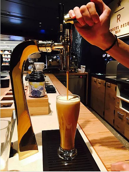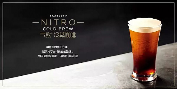 这款最早在2015年亮相于星巴克西雅图旗舰店的产品,是在冷萃咖啡的基础上加入食用氮气,使得咖啡中充满细密的气泡,口感变得非常细腻。