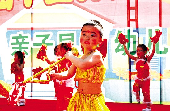 品牌加盟网 > 加盟资讯 > 红黄蓝亲子园幼儿班小朋友们在表演舞蹈节目《开门红》