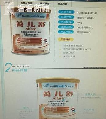 据上海市食药监局消息,上海雀巢产品服务有限公司经销的两批次不合格乳蛋白深度水解配方,生产日期分别为:2016年1月14日和1月15日,规格都是400克/罐。