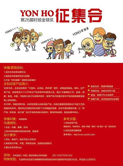 永和豆浆伴随用户消费升级,在传承传统匠心的前提基础上,推陈出新,不断研发新产品,发展新技术,追求时尚创新,为消费者呈现更丰富、更有营养的健康食品!也希望广大参与永和豆浆形象创意设计的小伙伴们大胆开动你们的脑洞,将永和豆浆“匠心传承