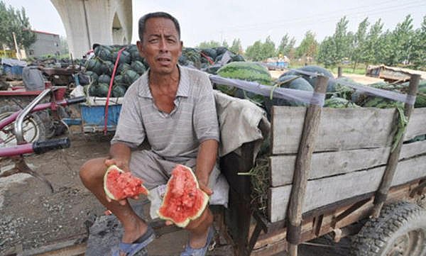 今年西瓜价格低迷,天气原因影响很大,西瓜成熟期有所推迟,造成西瓜扎堆上市,而且各地种植西瓜的地方增多,供大于求,瓜农一味注重产量,大量施用化肥,造成西瓜口感不好,也是销售困难的一个原因。